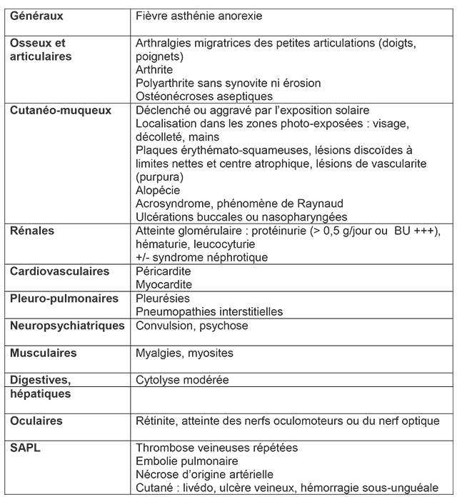 Principaux signes associés au Lupus