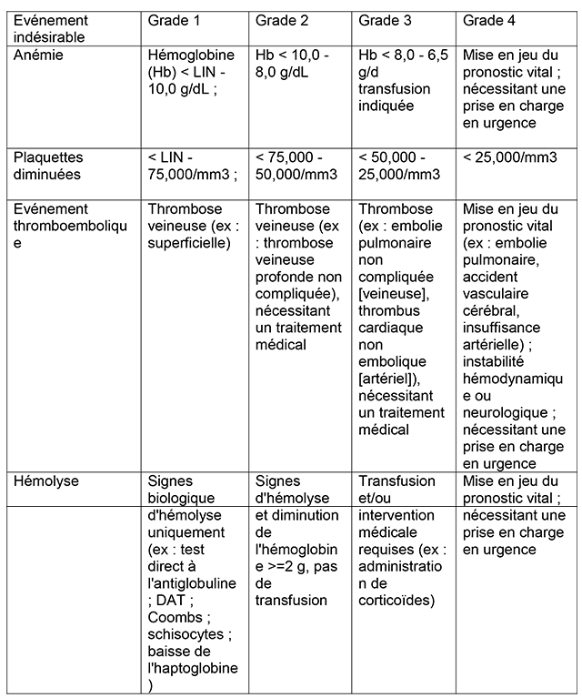 Anemia, Platelet count decreased, Hemolytic uremic syndrome, Thrombotic thrombocytopenic purpura, Thromboembolic event, Hemolysis